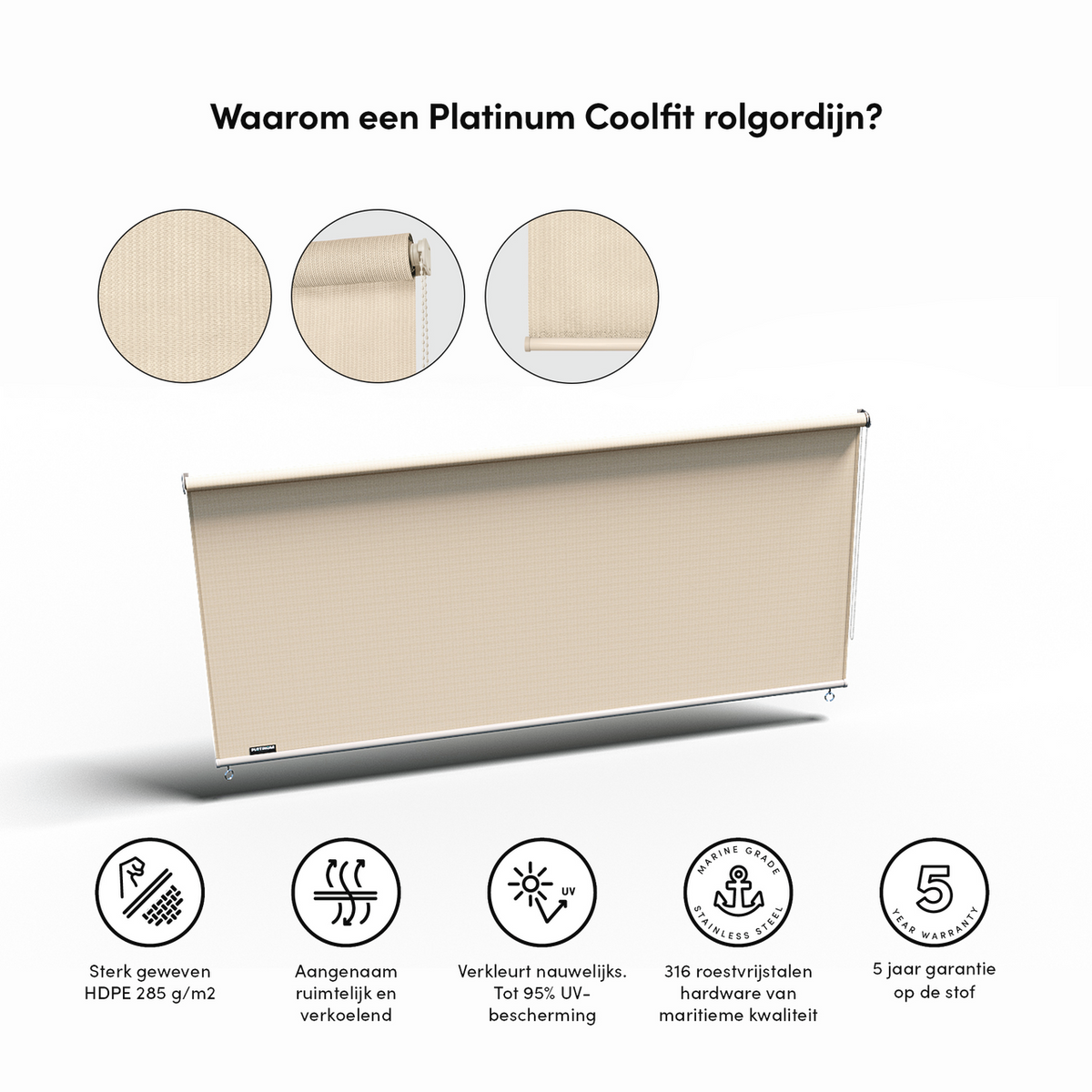 - Uitstekend te combineren met de Platinum Sun & Shade pergola of het flex frame.