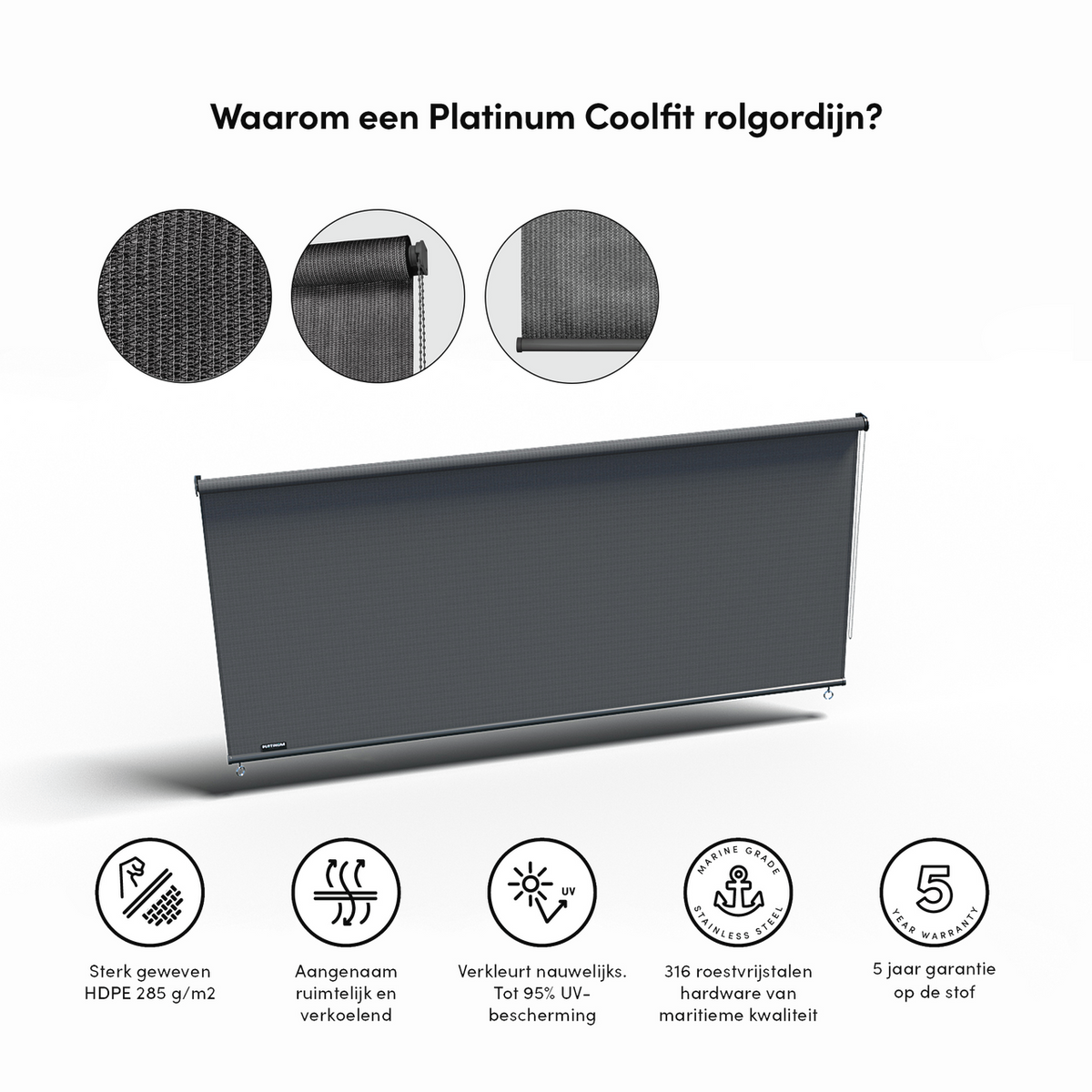 - Uitstekend te combineren met de Platinum Sun & Shade pergola of het flex frame.