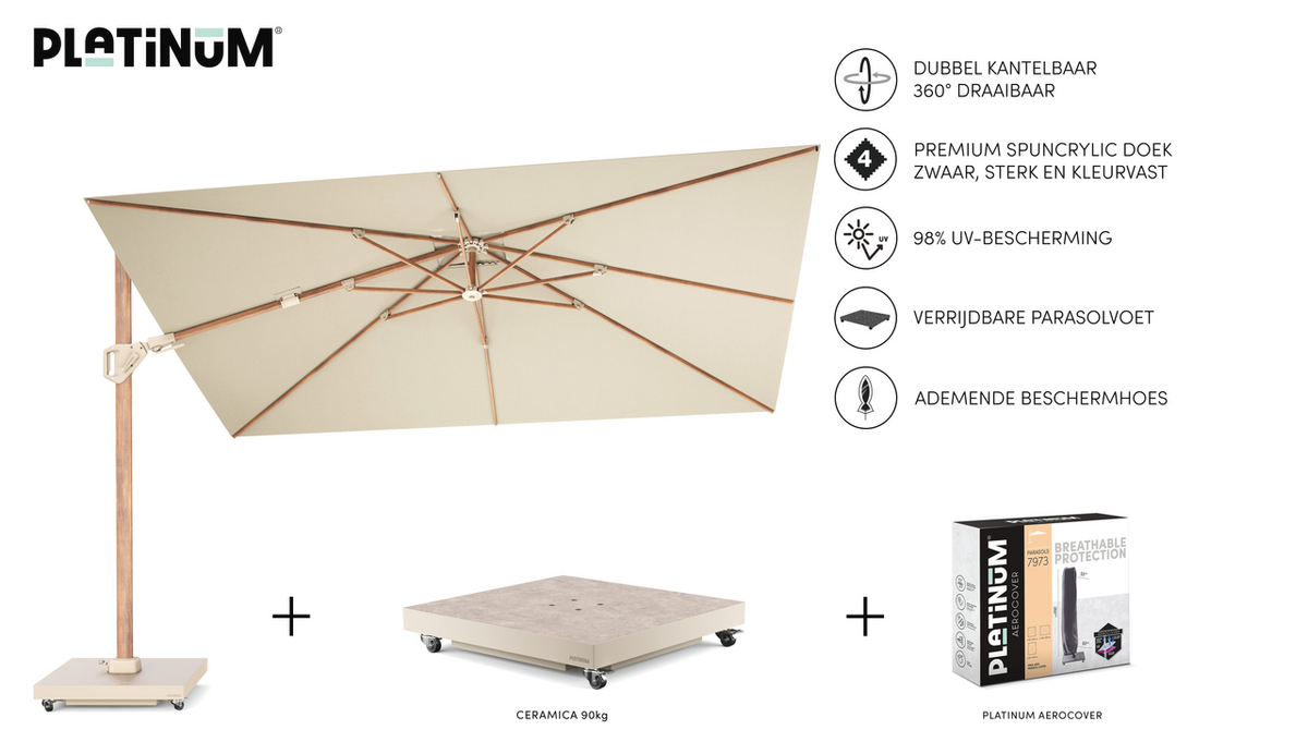 Platinum producten zijn verkrijgbaar in verschillende kleuren en hebben diverse typen doeken met ieder specifieke kenmerken. Neem de tijd om verschillende opties te overwegen. Wat is jouw stijl, wat past bij jouw outdoor thuis en tuinmeubelen en aan welke kenmerken moet het doek voldoen?