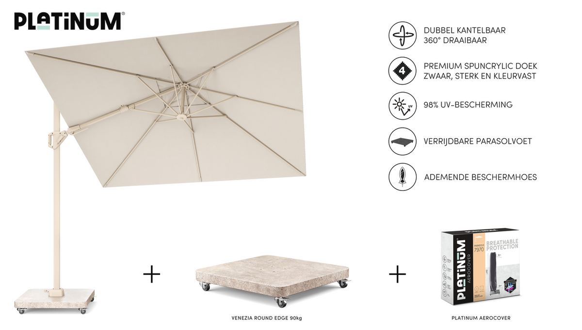 Platinum Sun & Shade zweefparasol Voyager T² Sandstone 270x270 Ivory.