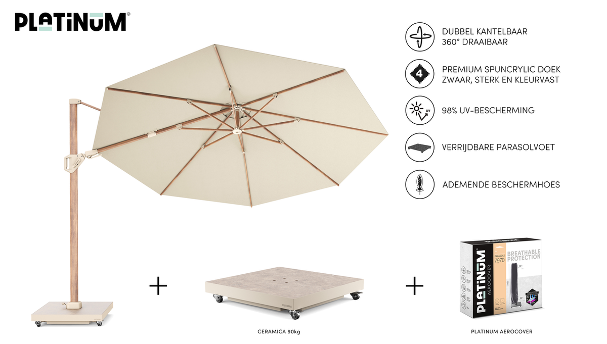 Platinum Sun & Shade Ampelsonnenschirm Challenger T² premium Teak look Ø3,5 Champagne