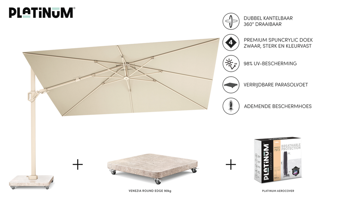 Platinum Sun & Shade parasol déporté Challenger T² premium Sandstone 260x350 Champagne.